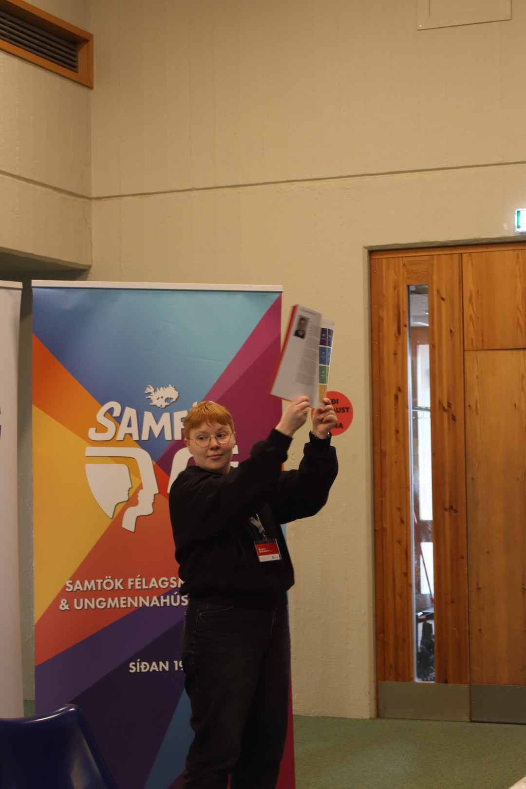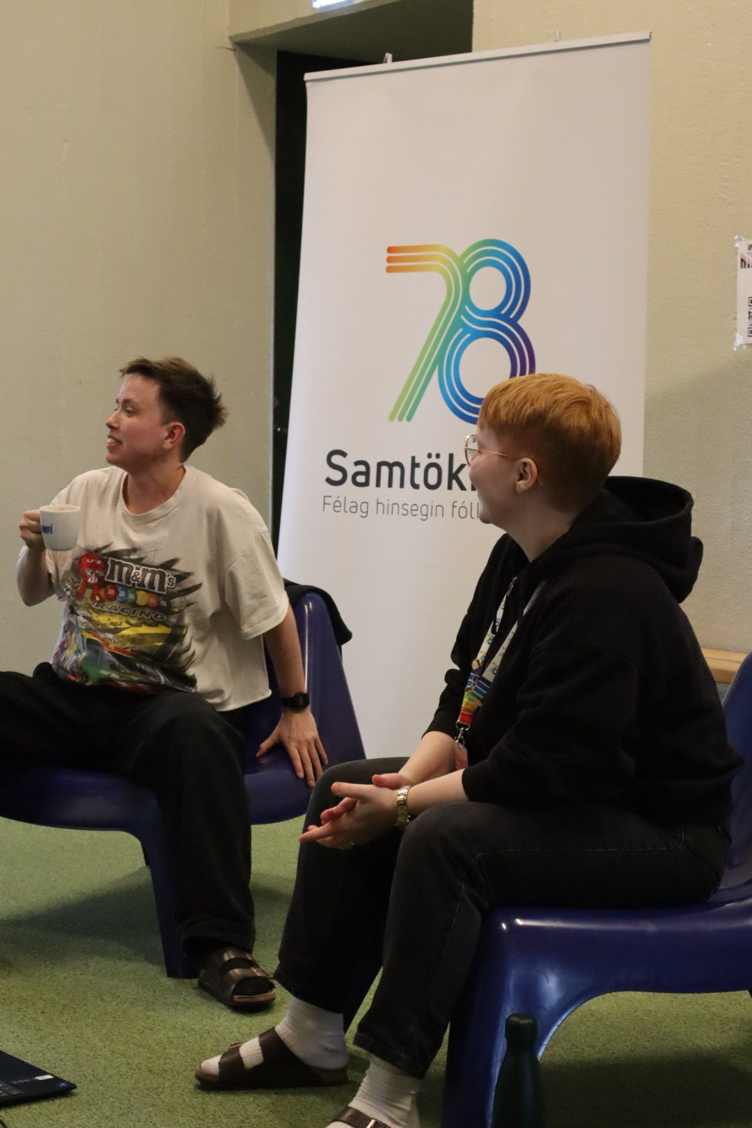 Bergrún, office manager, and Kristmundur, educator, were guests at the Landsmót and introduced the activities of Samtökin ‘78, in addition to Kristmundur hosting a workshop with the young people about queer matters.