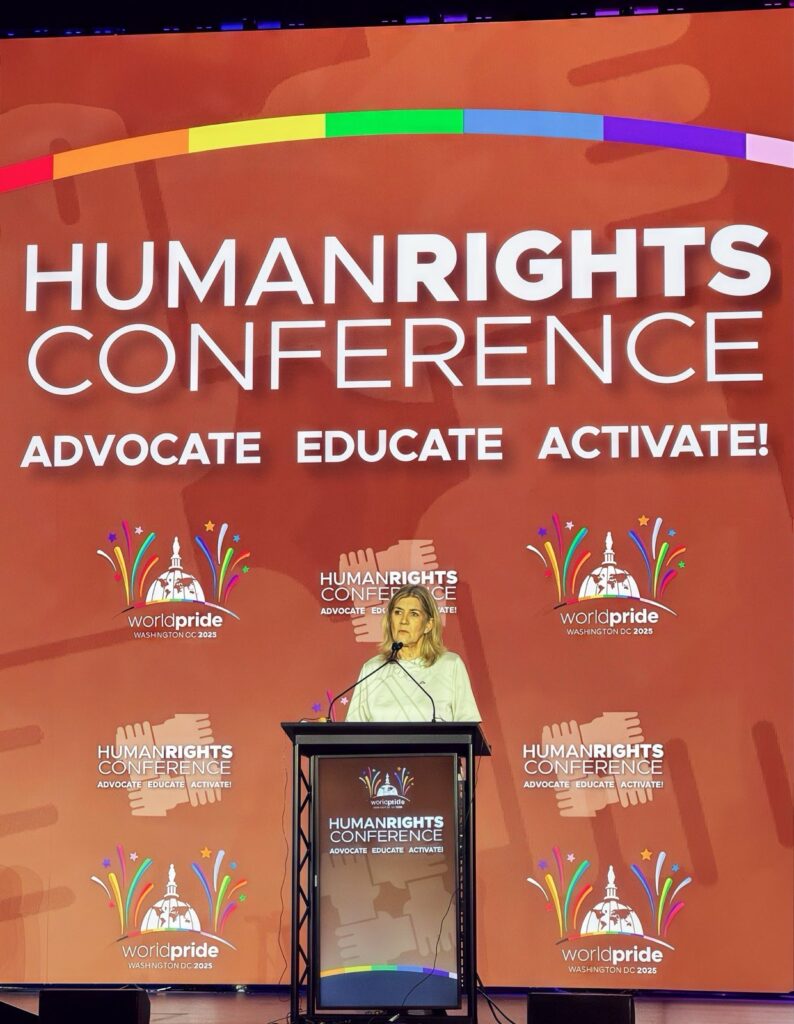 These words can be reflected in the remarks of the American Jessica Stern at the opening of the World Pride human rights conference: Those who can show up, must do more. Jessica is a former special representative for the advancement of queer people’s rights at the US State Department, and before that she was the executive director of Outright International. She lost her job after Trump took office, as did many other people who previously worked on queer issues for the US government. Jessica spoke about how guests needed to realize that those who had the opportunity to attend the human rights conference were the lucky ones, that they didn’t have to fear losing their jobs or even their freedom just for being at a queer conference. That it was a privilege, but privilege comes with responsibilities.